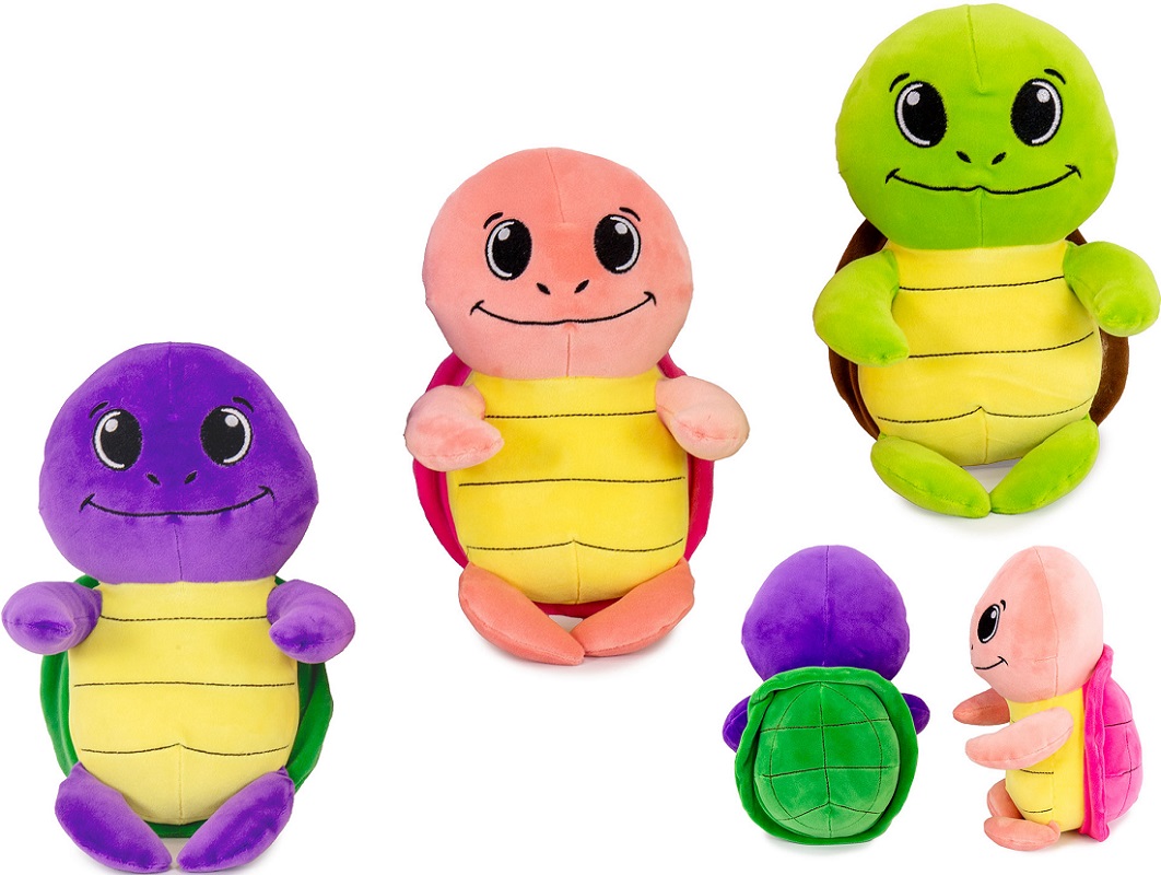 Plüsch Bunte Schildkröten sitzend 3/s ca. 25cm (Lila/Grün/Gelb, Rosa/Pink/Gelb, Grün/Braun/Gelb)