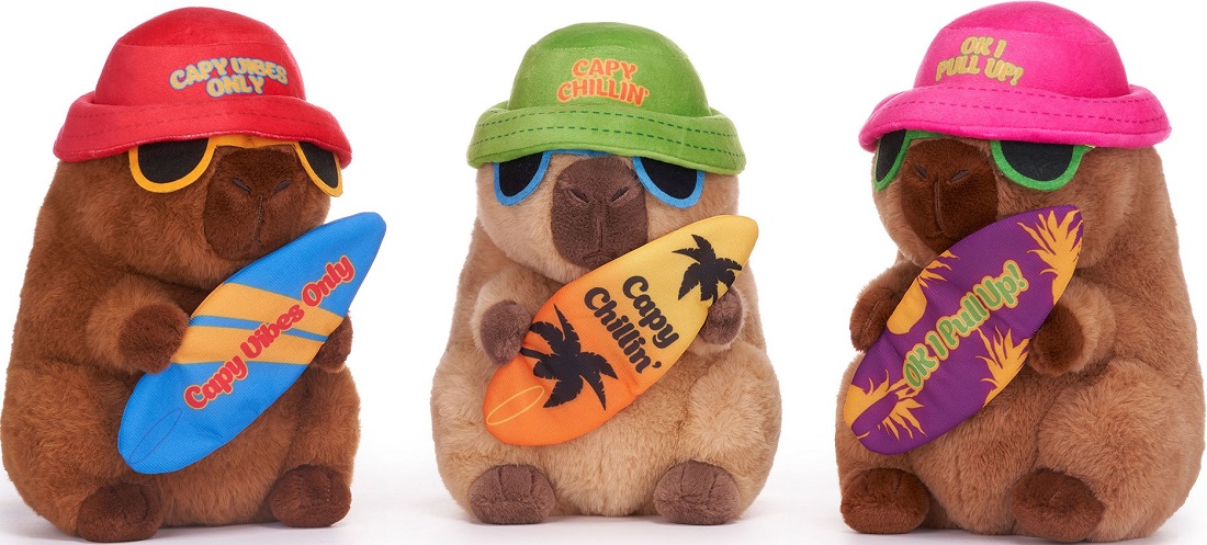 Plüsch Capybara mit Surfboard & Strandhut 3/s ca. 25cm