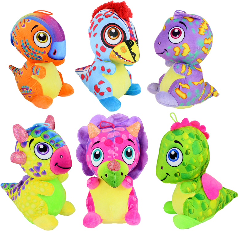 Plüsch Dinosaurier sitzend in bunten Farben und Glitzer ca. 23cm 6/s