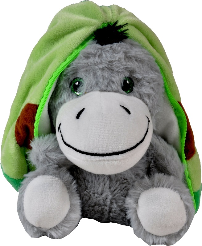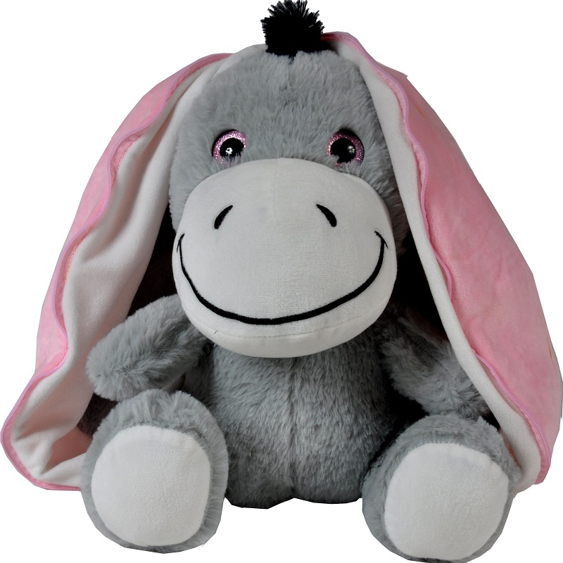 Plüsch Esel mit GlitzerAugen & Erdbeer- / Avocado Ohren + Reißverschluss zum ver