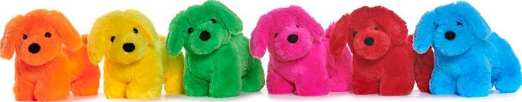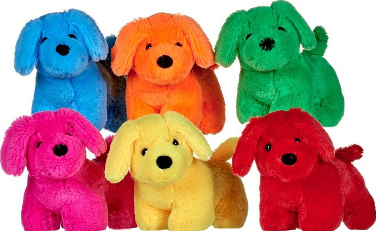 Plüsch Hunde stehend Bunt 6/s ca. 23cm (Blau, Orange, Grün, Pink, Gelb, Rot)