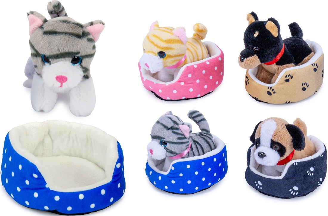 Plüsch Katze & Hund mit GlitzerAugen im Körbchen 4/s ca. 12cm