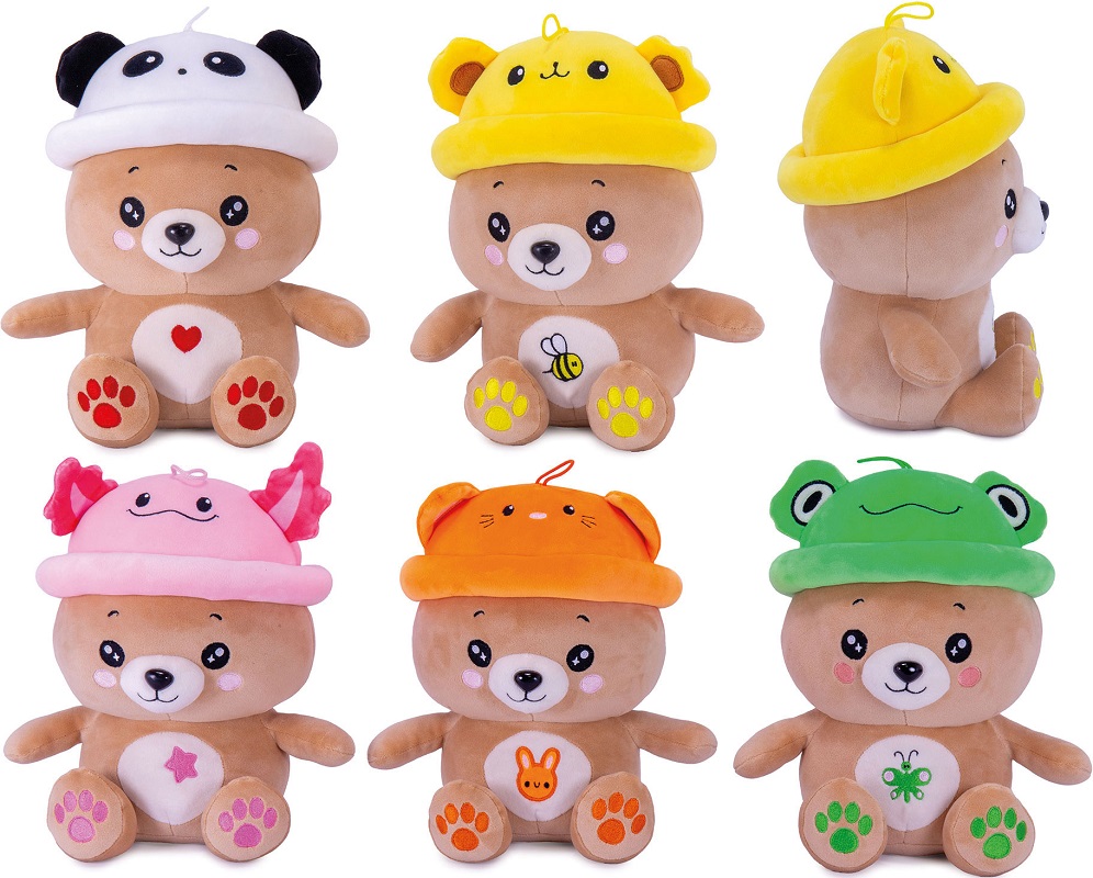 Plüsch Kawaii Bären sitzend mit Tier-Hut & Stickerei auf dem Bauch 6/s ca. 25cm