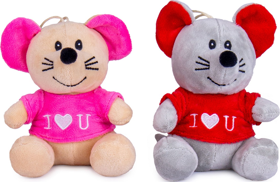 Plüsch Maus mit T-Shirt "I Love U" sitzend ca. 15cm 2/s (Braun/Pink, Grau/Rot)