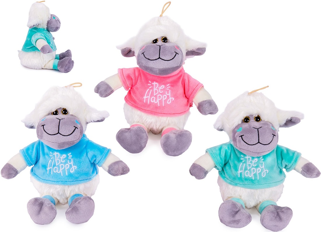 Plüsch Schaf mit T-Shirt Be Happy & GlitzerAugen ca. 27cm (Pink, Blau, Grün)