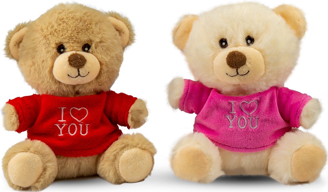 Plüsch Teddy sitzend mit T-Shirt "I love You" 2/s ca. 16cm
