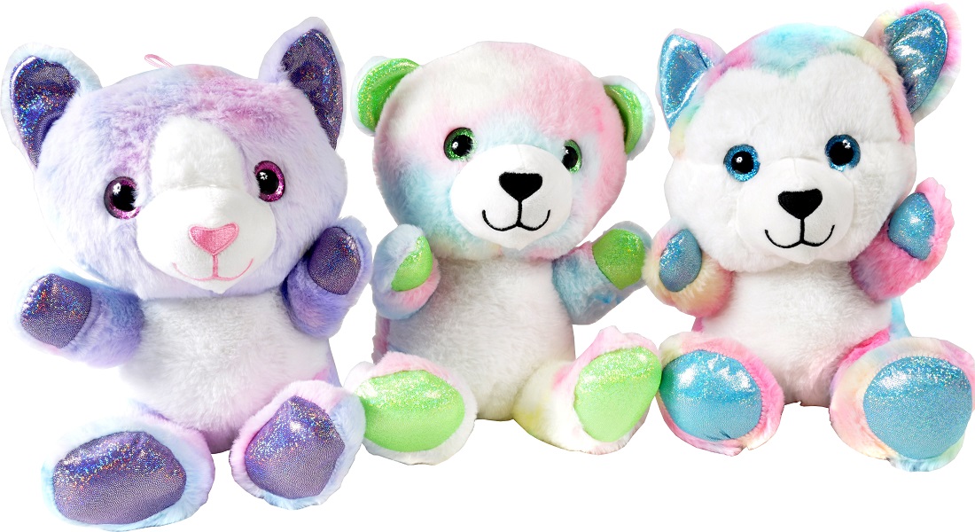 Plüsch Tierchen Pastellfarbend sitzend mit GlitzerAugen, -Ohren & -Pfoten 3/s ca
