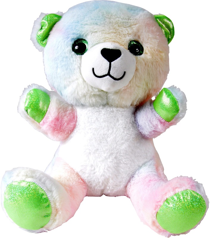Plüsch Tierchen Pastellfarbend sitzend mit GlitzerAugen, -Ohren & -Pfoten 3/s ca. 30cm (Katze, Bär, Hund)