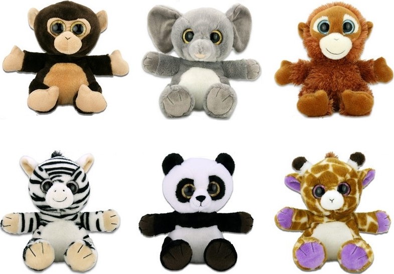 Plüsch Tiere mit GlitzerAugen und ausgestreckten Armen sitzend ca. 20cm 6/s (Affe, Elefant, Orangutan, Zebra, Panda, Giraffe)