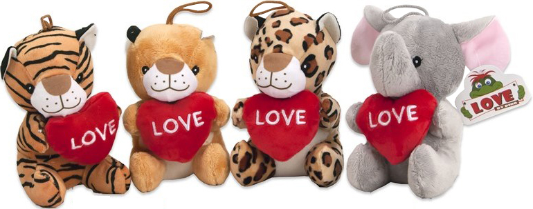 Plüsch Tieren mit Herz in der Hand LOVE 4/s ca. 14cm (Tiger, Löwe, Leopard, Elefant)