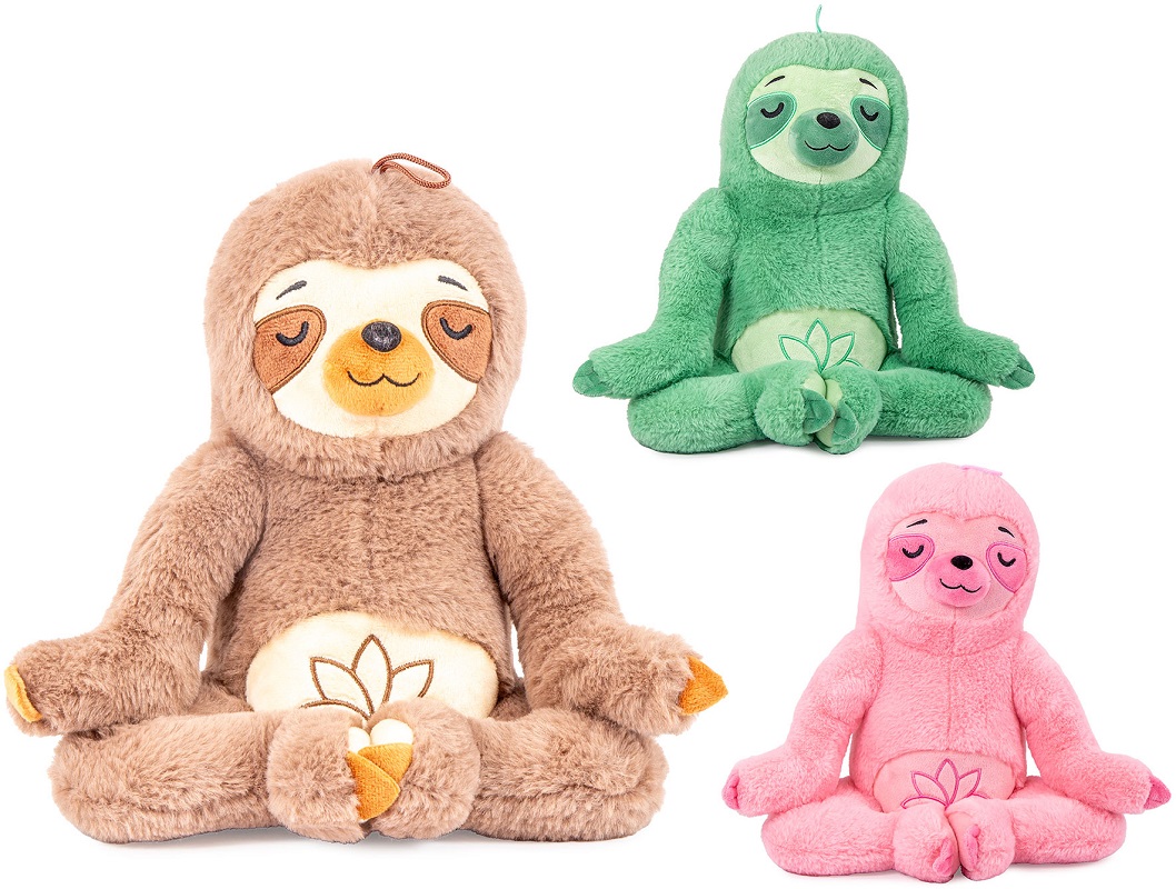 Plüsch Yoga Faultier sitzend Bunt mit Stickerei am Bauch 3/s ca. 28cm (Grün, Rosa, Braun)