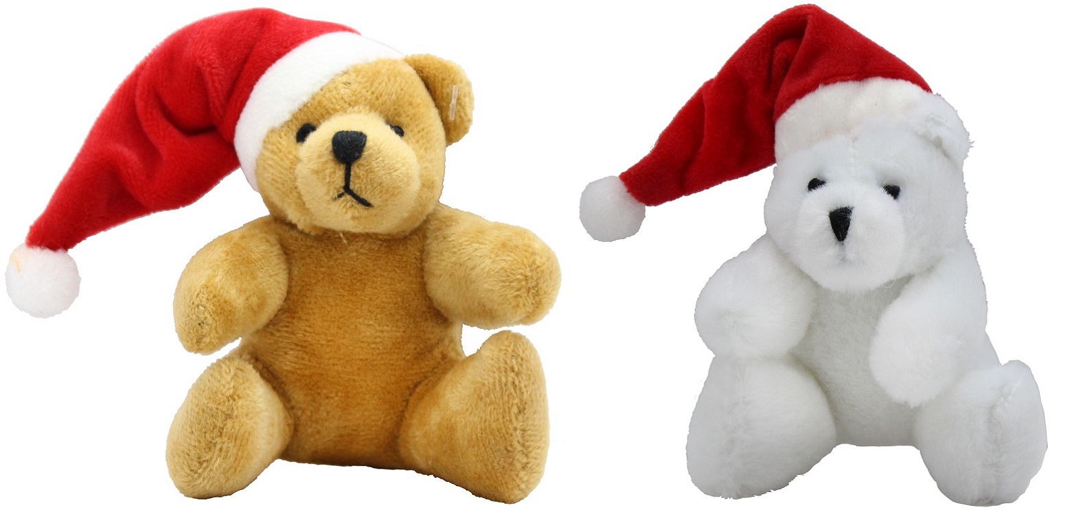 Plüschteddy und Plüsch Eisbär mit Santamütze 12x10x8cm