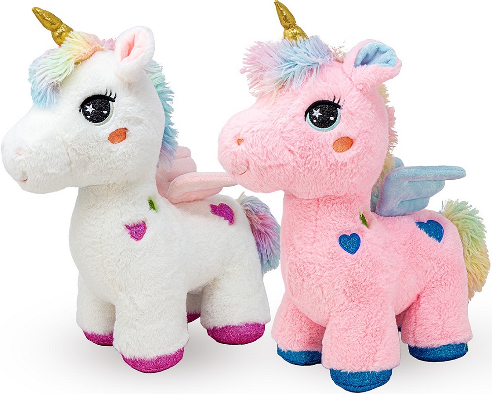 XXL Plüsch Einhorn mit Flügeln und Herz Stickereien am Körper 2/s ca. 55cm (Weiß, Pink)