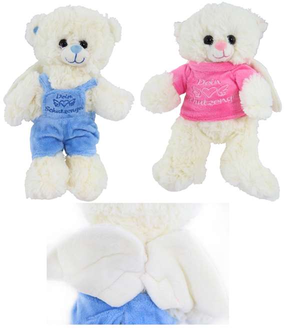 Plüsch Schutzengelbär "Dein Schutzengel" mit Latzhose 2-farb. Sort. ca. 18cm