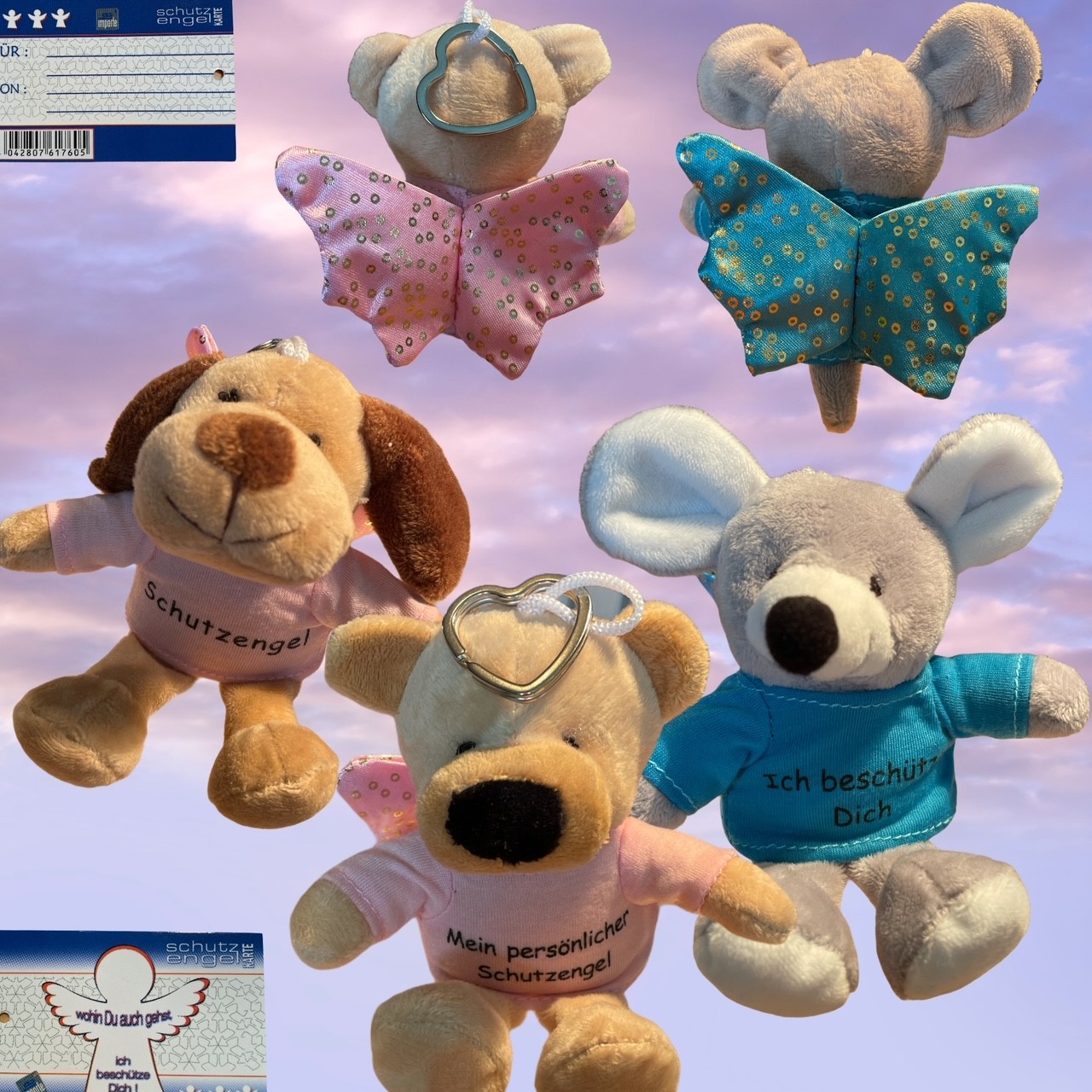 Plüsch Tiersortiment mit Schutzengel in rosa/hellblau in 24er T-Dsp.