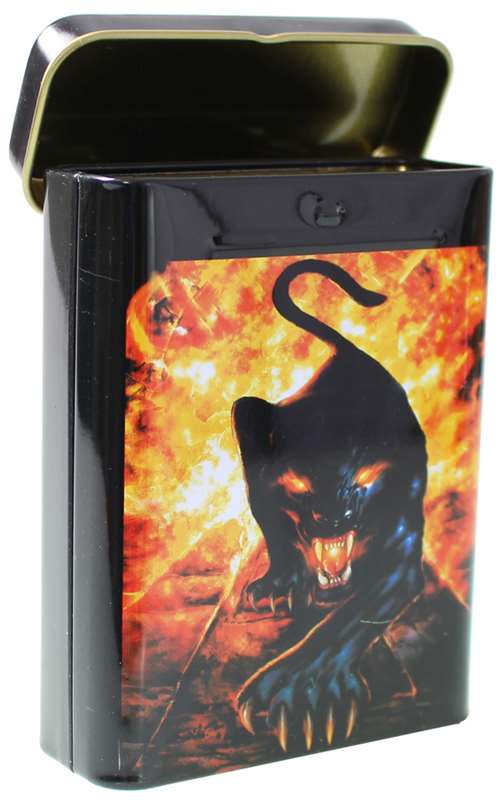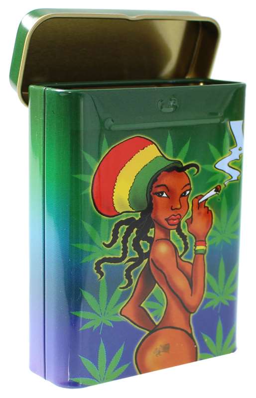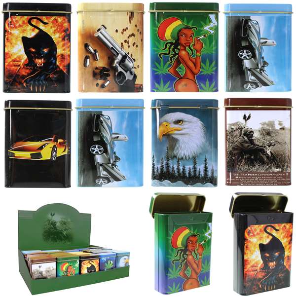 Zigaretten Dose Metall 25er mit 7-fach sortierte Motive ca.9x7x2,8cm im Dsp.