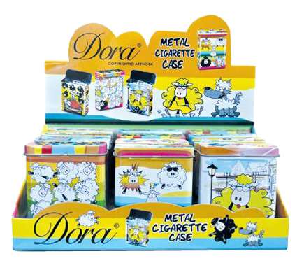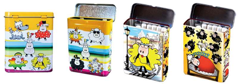 VE:12 Zigaretten Dose "Sheep" Metall ca. 9x7cm im Dsp.