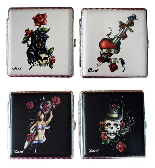 VE:12 Zigaretten Etui mit Black&Roses Motive sort. Im 12er Dsp.