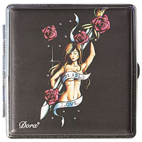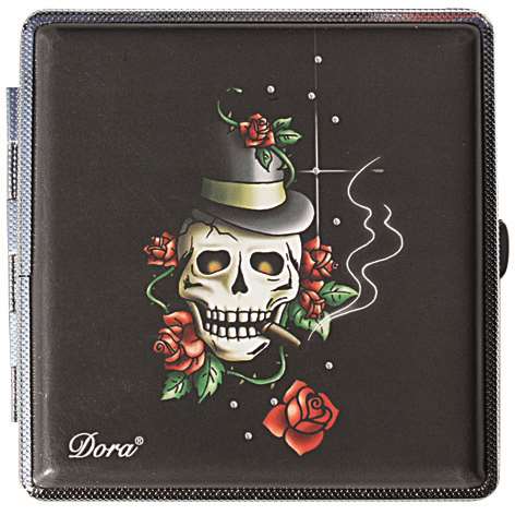 Zigaretten Etui mit Black&Roses Motive sort. Im 12er Dsp.