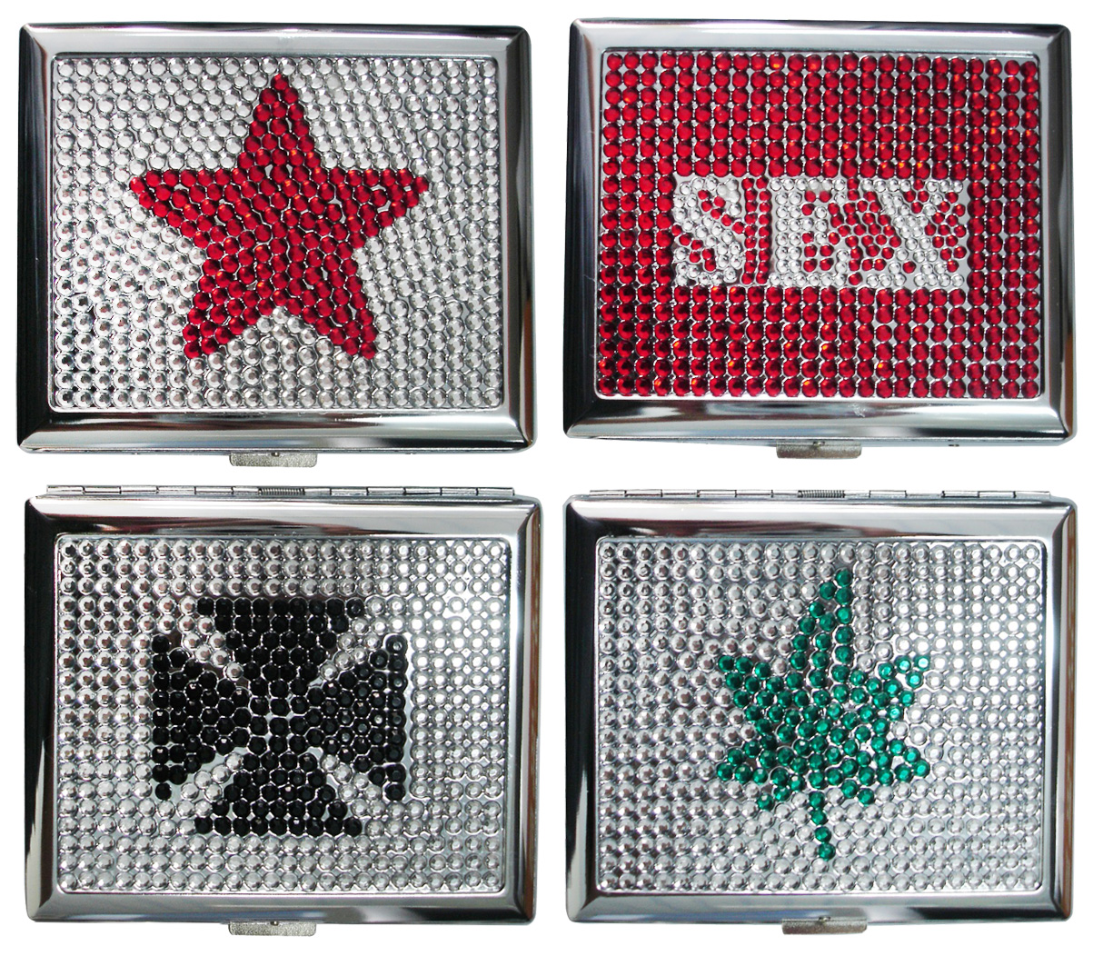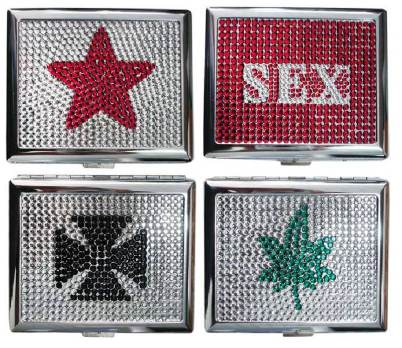 Zigaretten Etui "Sex&Bling"Metall mit Strass ca. 9x8cm im 8er Dsp.