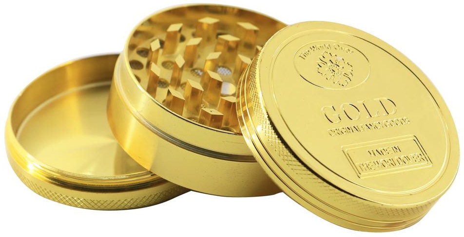 Grinder Metall goldenes Münz Design Ø50mm 3 tlg. 18er T-Dsp.