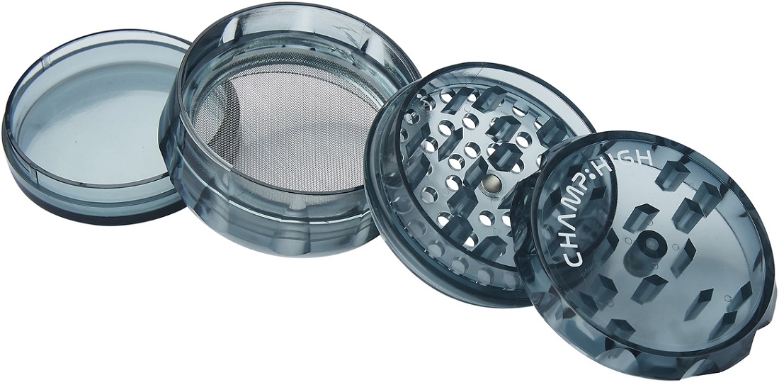 Kunststoff Grinder Transparent Champ High ca. Ø 63mm 4tlg. in 12er T-Dsp. (Schwarz, Blau, Grün, Gelb, Pink, Weiß)