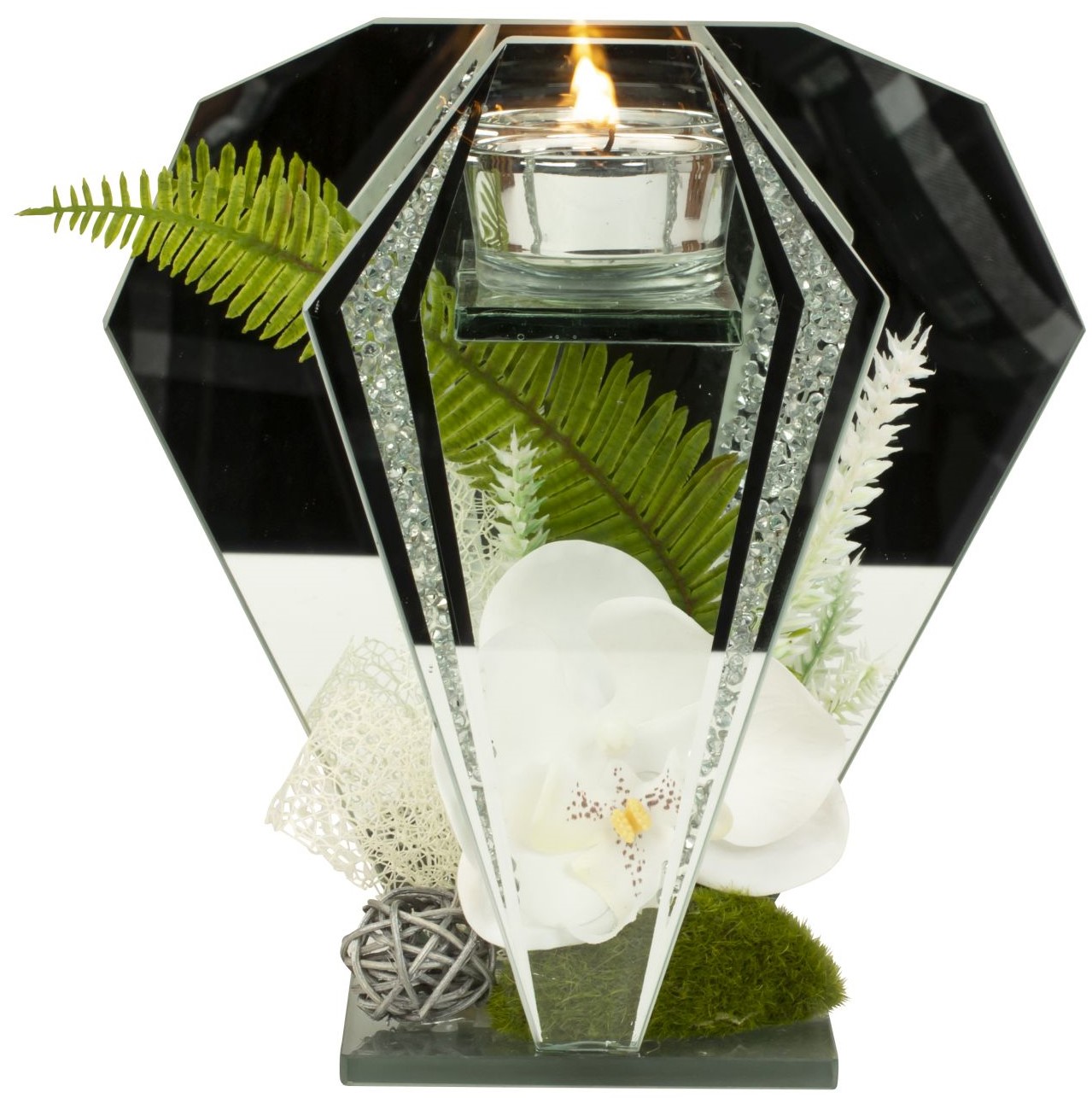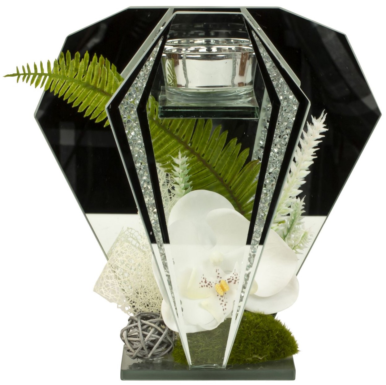 Glasdeko mit Orchidee-Deko für Teelicht ca. h=19cm b=18,5cm