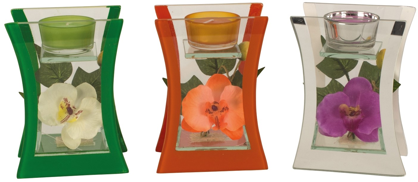 Glasdeko mit Orchidee für Teelicht 3/s ca. h=14,5cm b=10cm