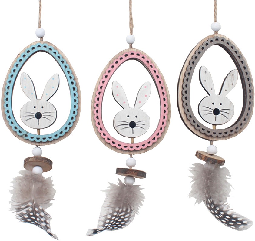 Holzaufhänger für Ostern "Hase im Ei und Feder" ca. 14 x 7,5cm