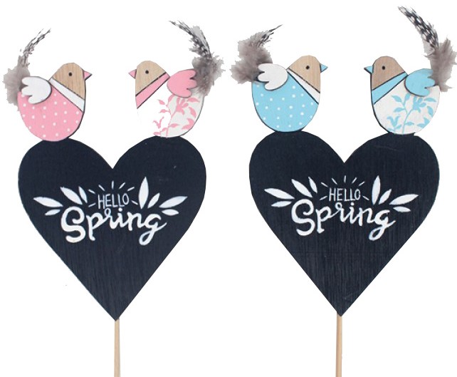 Holzherz "Hello Spring" mit 2 Vögeln 2/s ca. 39 x 10cm