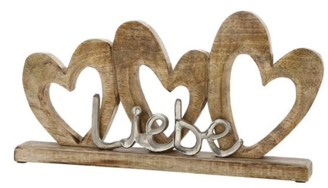 Schriftzug "Liebe" mit Herzen im Hintergrund auf Holzfuß ca. 40 x 22 x 5cm