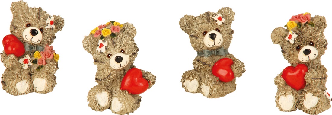 Deko Bärchen mit Herz und Blümchen aus Polyresin 4/s ca. 6,5cm