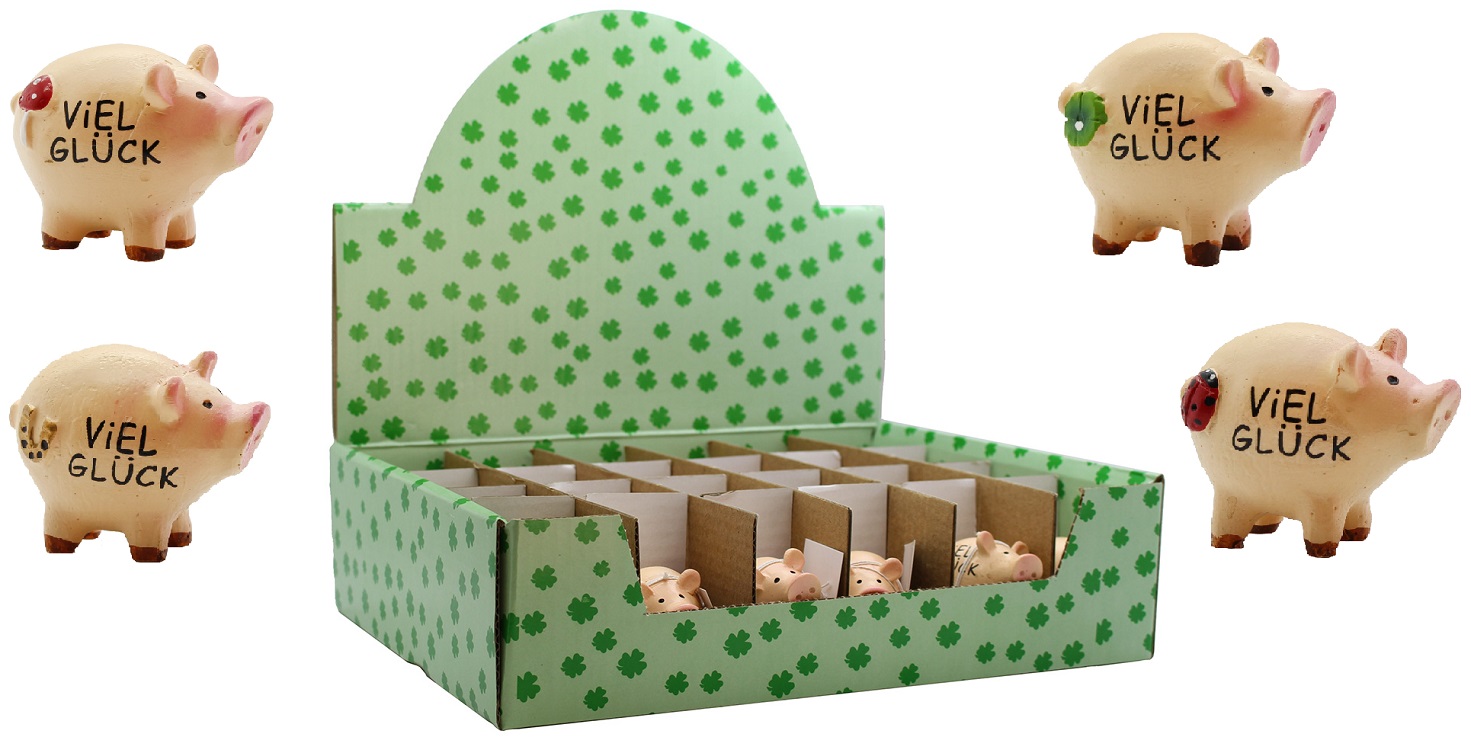 Glücksbringer Schwein "Viel Glück" 4/s 5x4cm in 24er T-Dsp.