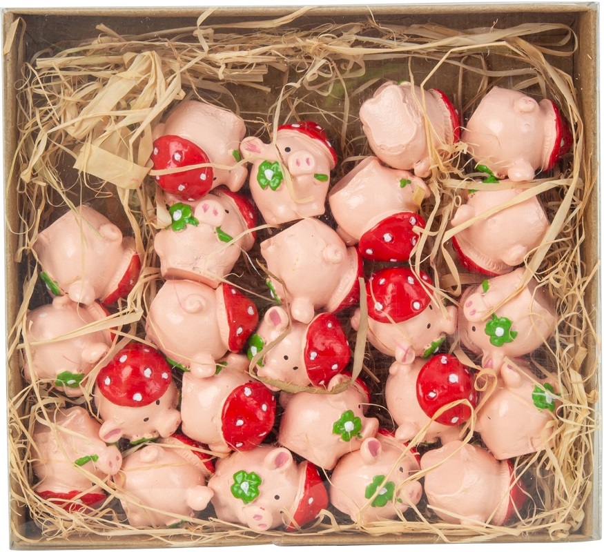 Glücksschweinchen Rund mit Kleeblatt im Mund und Pilzhut ca. 2cm im 24er T-Dsp.