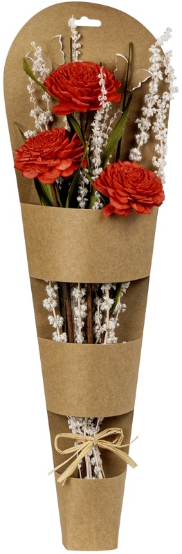 Trockenblumen-Gesteck mit roten Blumen gepackt in Kraftpapier ca. 45cm