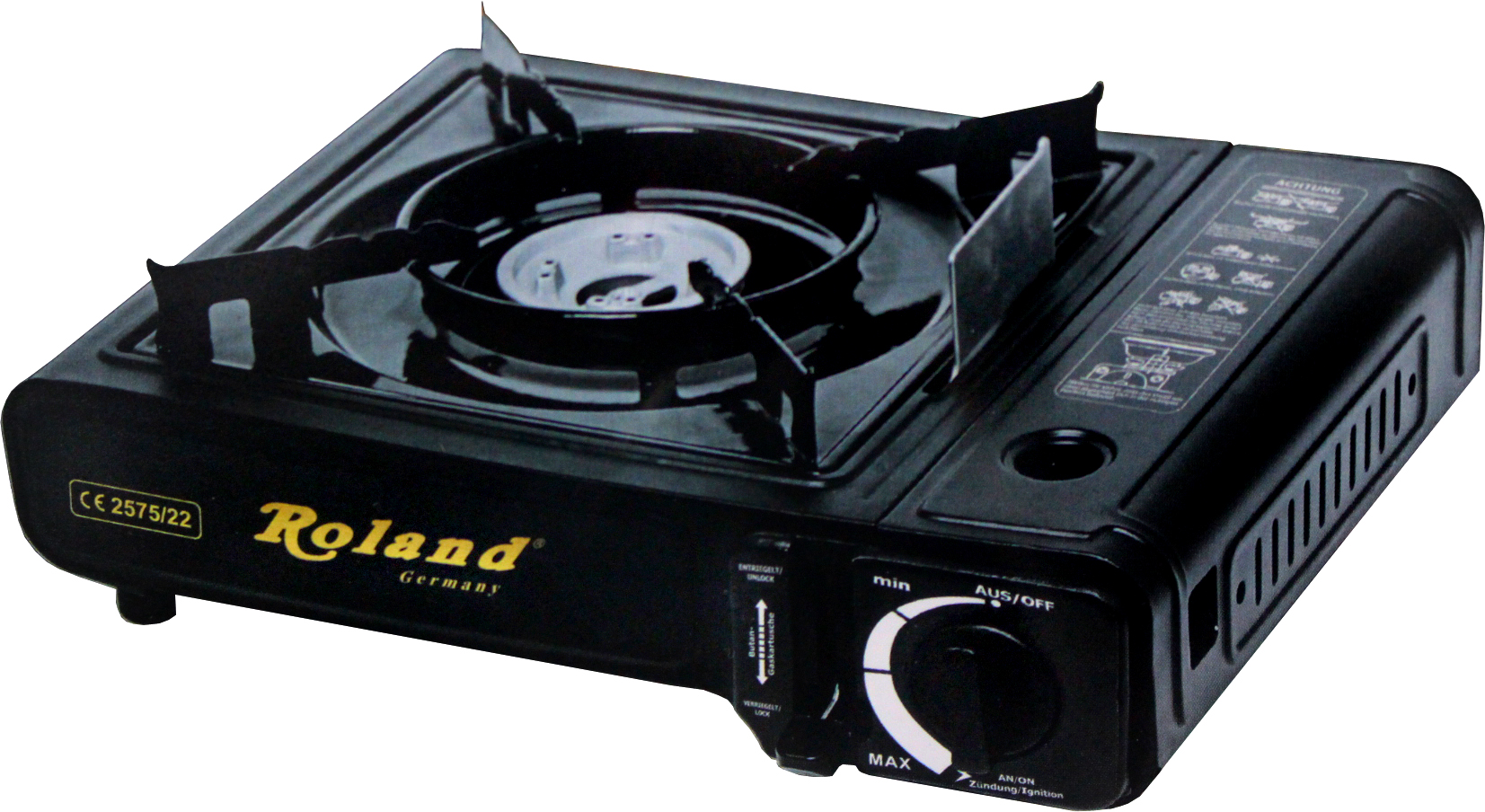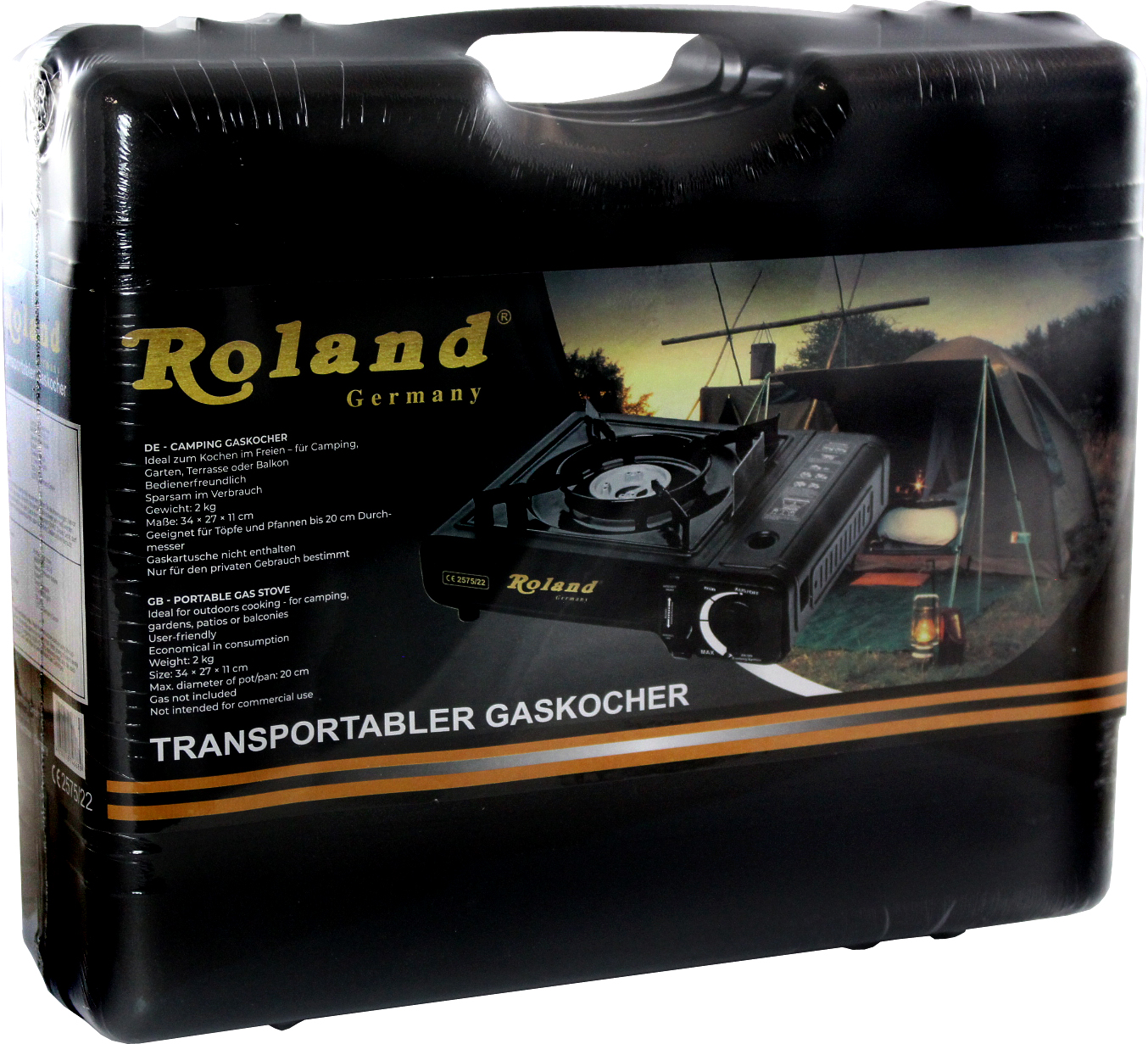 Camping Gaskocher Roland portabel mit Koffer ca. 34 x 27 x 11cm 2kg (für Töpfe und Pfannen bis Ø 20cm)