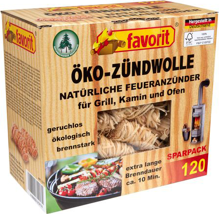 Favorit Öko-Zündwolle natürliche Feueranzünder für Grill, Kamin und Ofen in 120er Sparbox - geruchslos, ökologisch & brennstark mit extra langer Brenndauaer von ca. 10min
