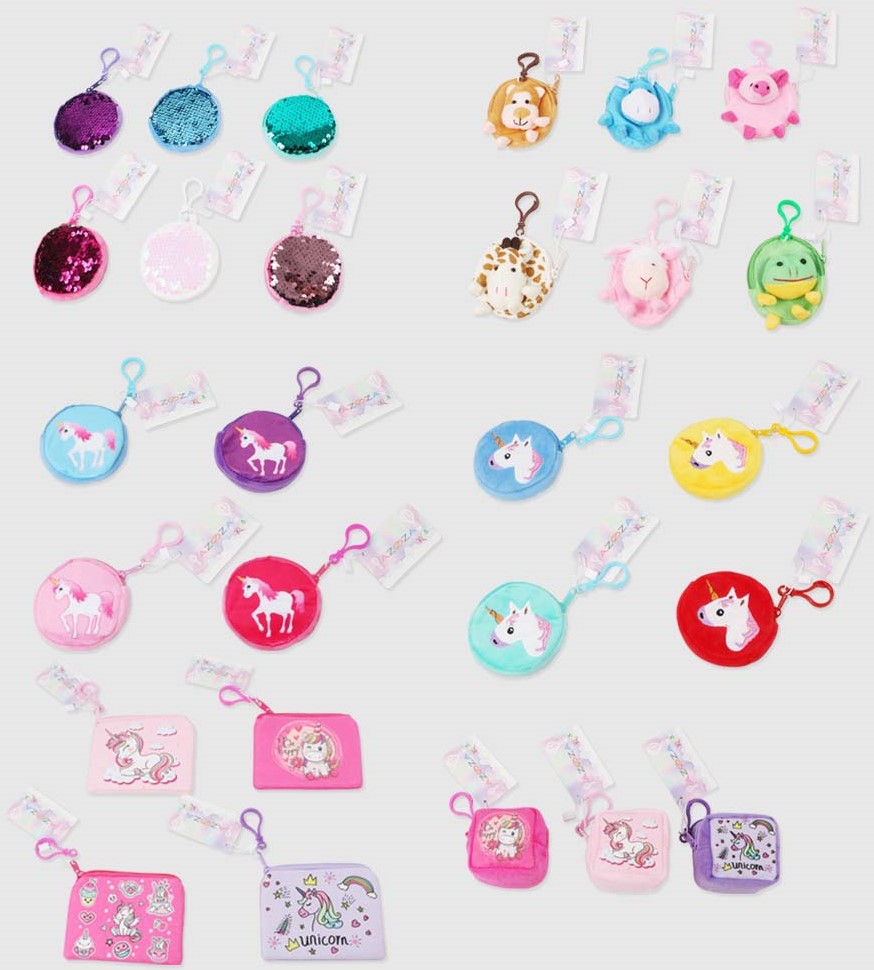 Kinder-Schlüsselanhänger Cute Wallets glitzernd, Einhörner und süße Tierchen 6/s