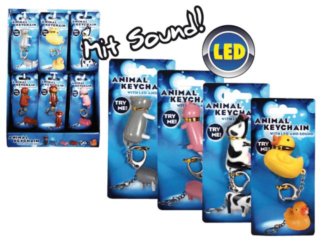 Süße Tierchen Schlüsselanhänger mit LED und Sound in 12er T-Dsp.