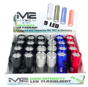 Taschenlampe 9 LED Alu mit Lasche ca. 9cm 4/f(ohne Batt.) im 24er T-Dsp.