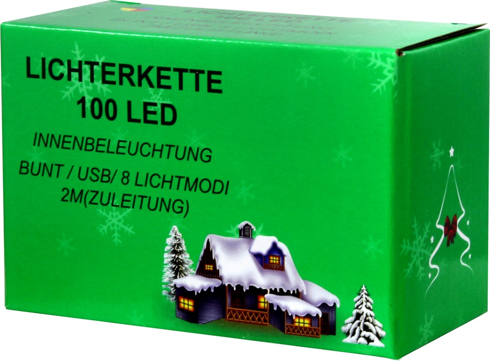 Deko Lichterkette für Innen LED, bunt leuchtend mit USB-Anschluss ca. 200cm mit 100 LEDs und 8 Lichtmodi