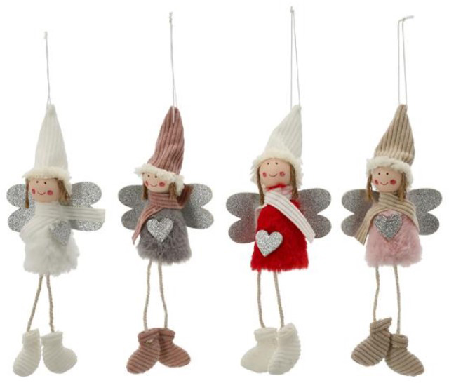 Engel Aufhänger mit Herz und GlitzerFlügeln 4/s ca. 20cm (rot, weiß, grau, rosa)
