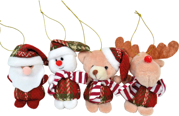 Süße Weihnachtsplüschfiguren 4/s ca. 9 x 8cm (Santa, Rudolf, Teddy, Schneemann)