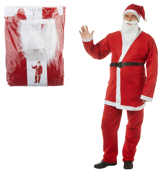 Weihnachtsmann Kostüm 5 tlg., Jacke/Hose/Gürtel/Mütze/Bart, Einheitsgröße