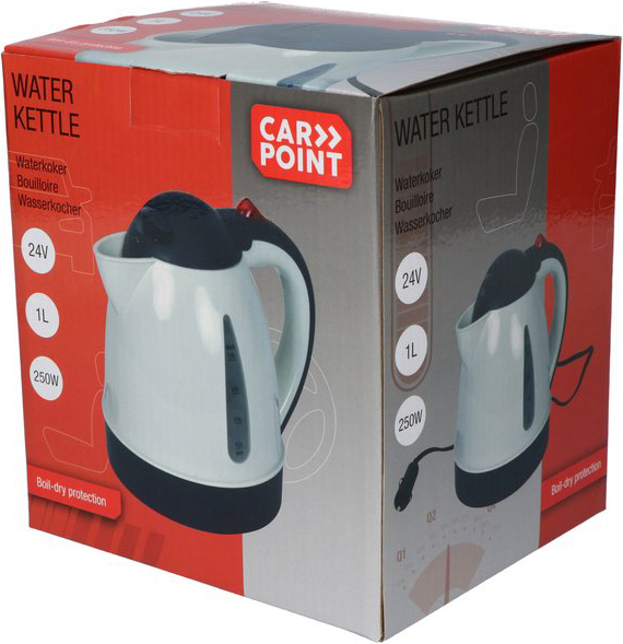 Carpoint Wasserkocher 24V 250W 1 Liter, mit Trockengehschutz & Abschaltautomatik, Ideal für die Verwendung im PKW, LKW, Boot oder auf dem Campingplatz