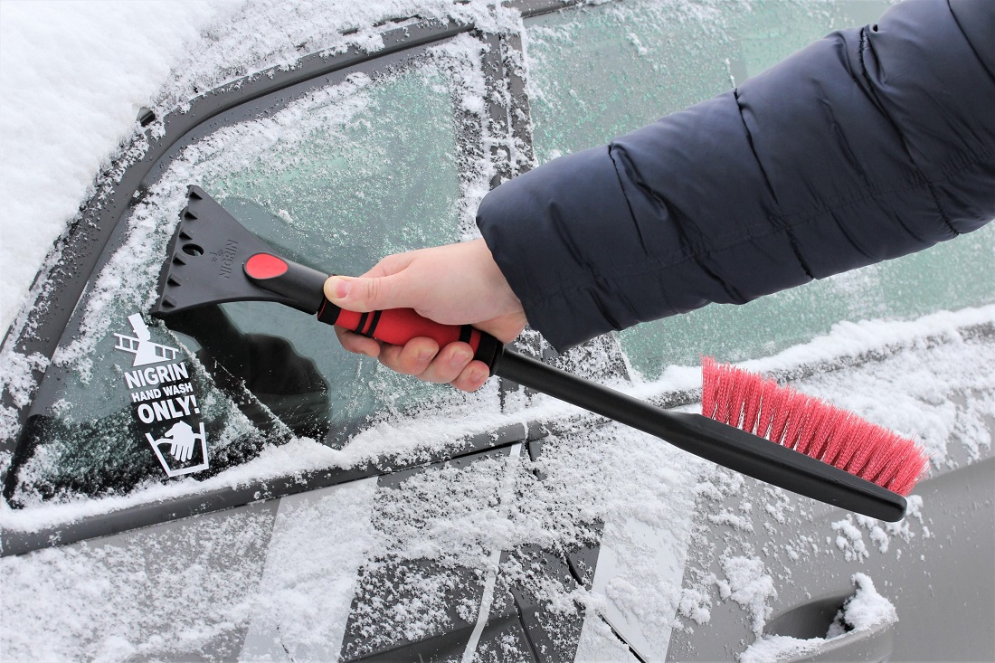 Nigrin 2in1 Eisschaber & Schneebesen ca. 60cm, entfernt schonend & effektiv Schnee & Eis, mit stabiler, präziser 90mm Eisschabkante, Eisbrechzacken, weichem Besen zur kratzerfreien Entfernung von Schnee & profiliertem Griff für mehr Grip