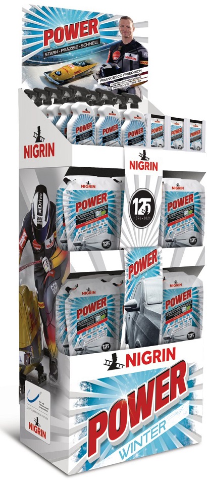 NIGRIN Power Winter 78-tlg. Boden-Display (inkl. 24xScheib.Frostsch. -52°C 2l, 14xScheiben-Enteiser 750ml und 40xReinigungstücher 20Stk.)