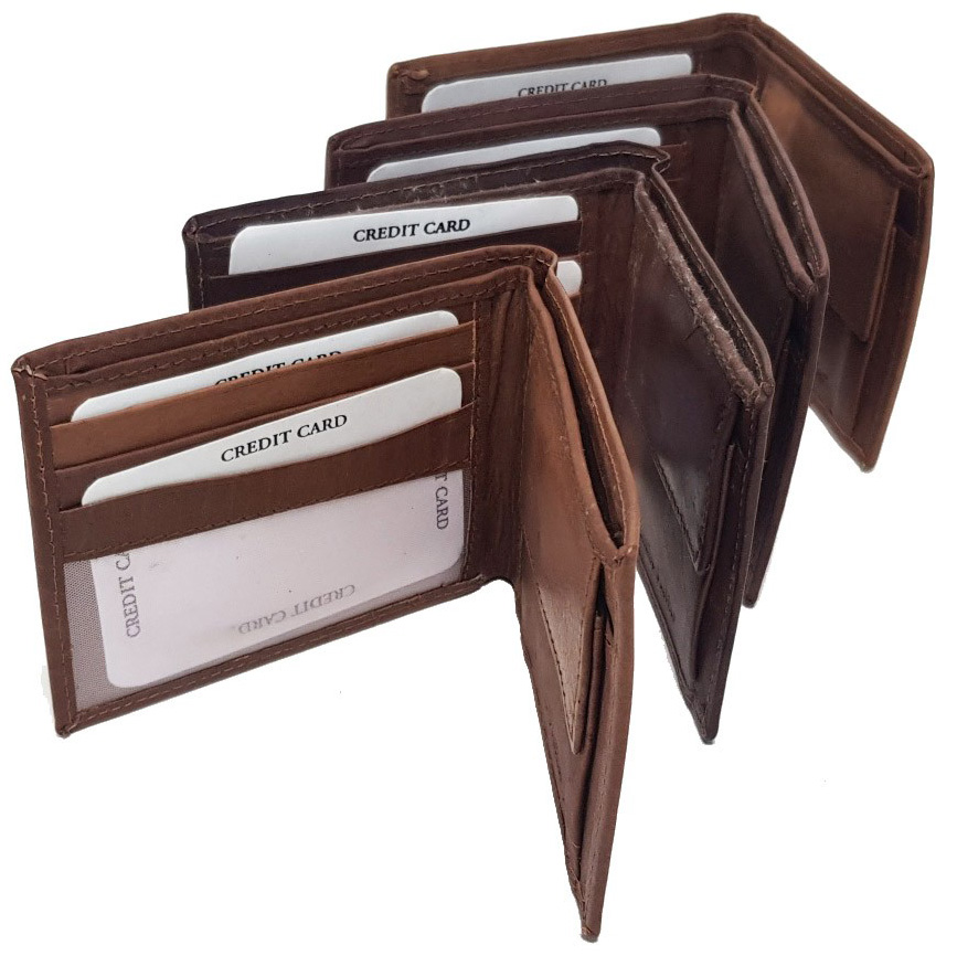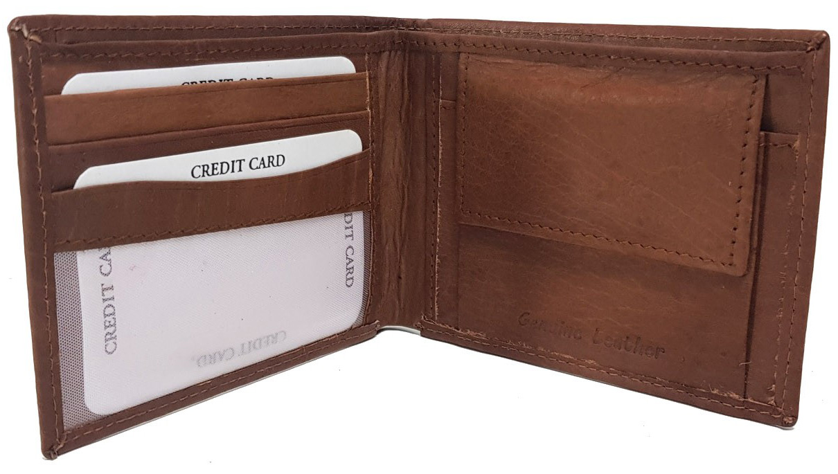 Geldbörse Portemonnaie Echt 100% Leder BRAUN Motive Mix 11,5x8,5cm
