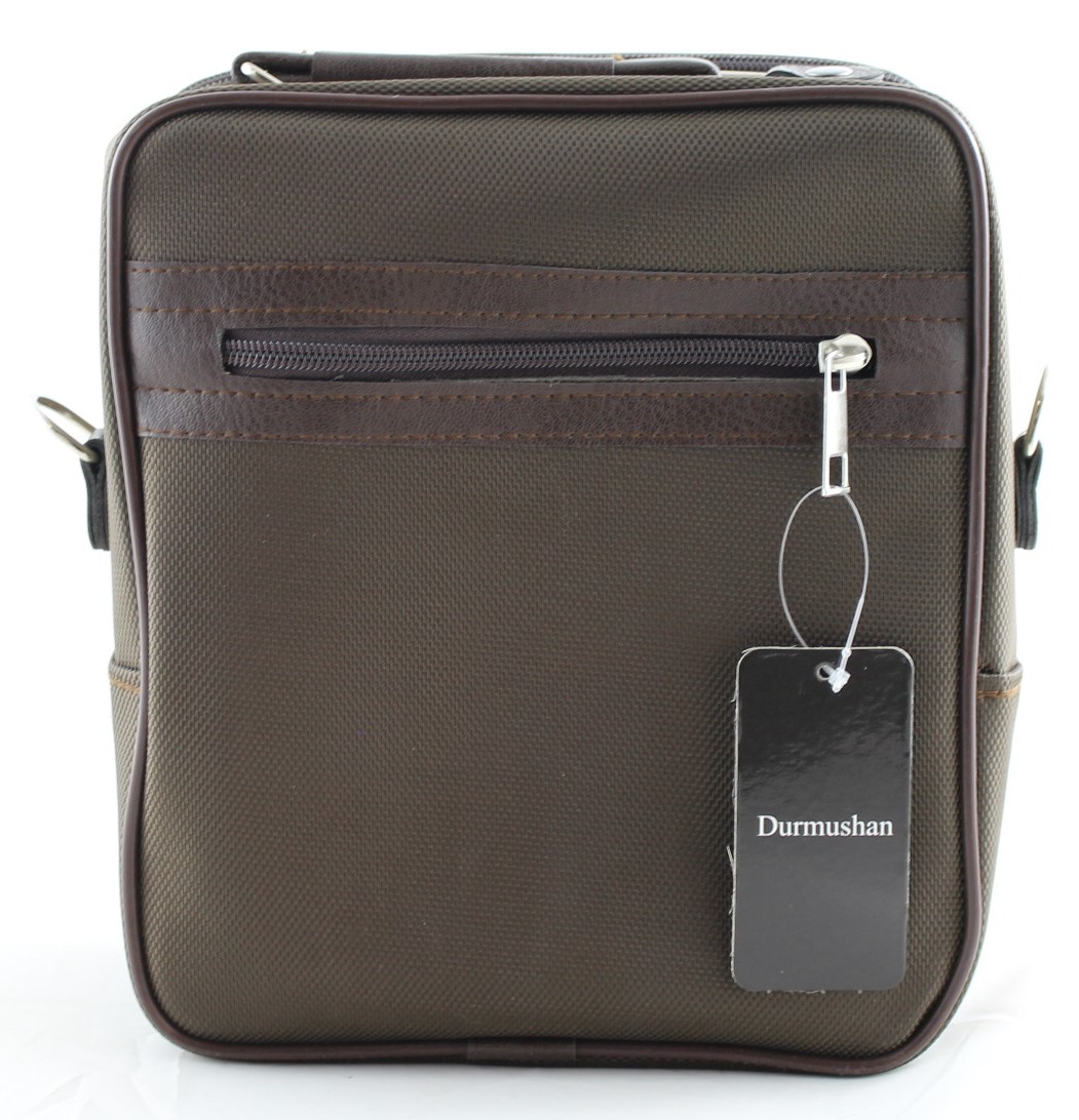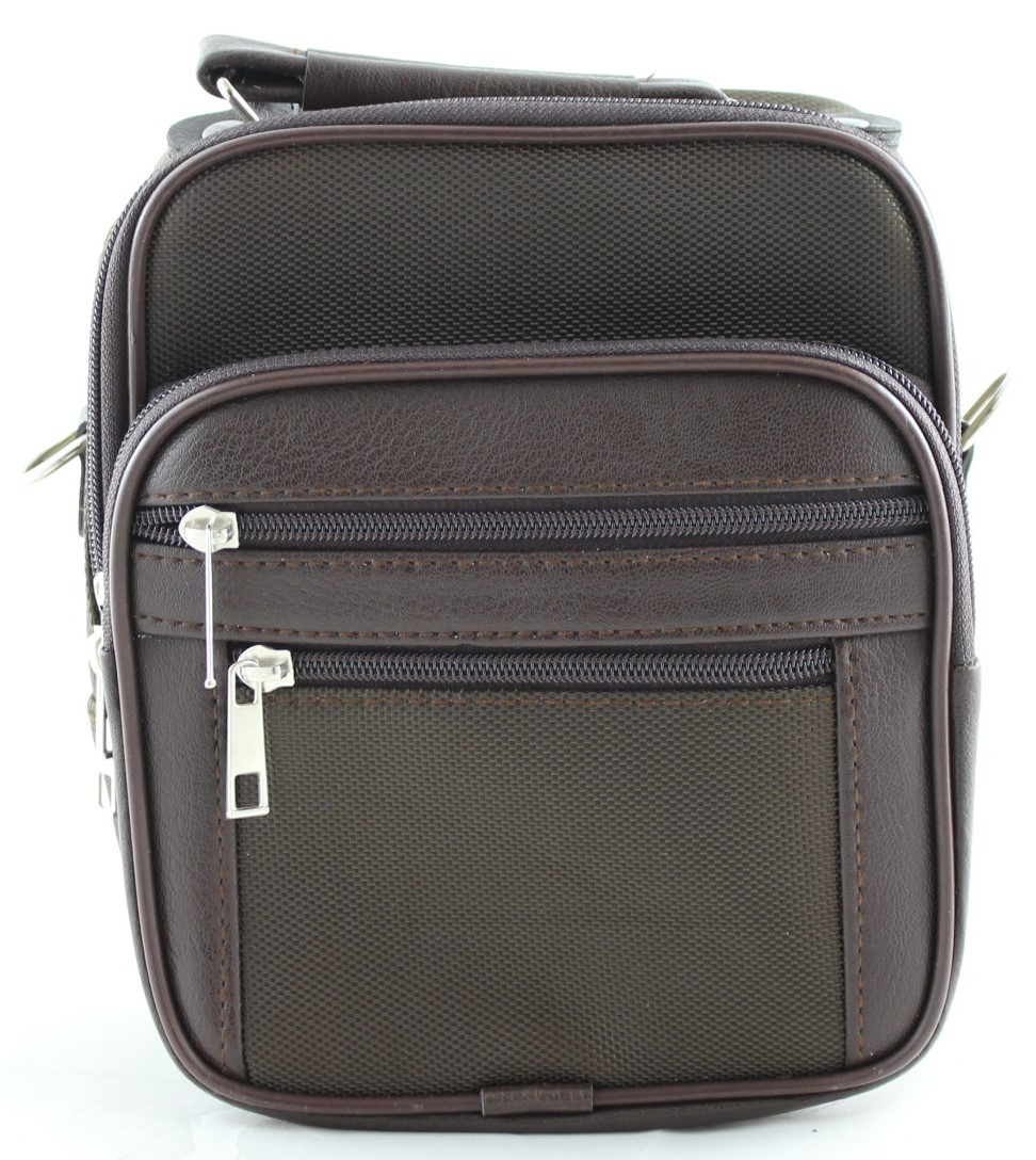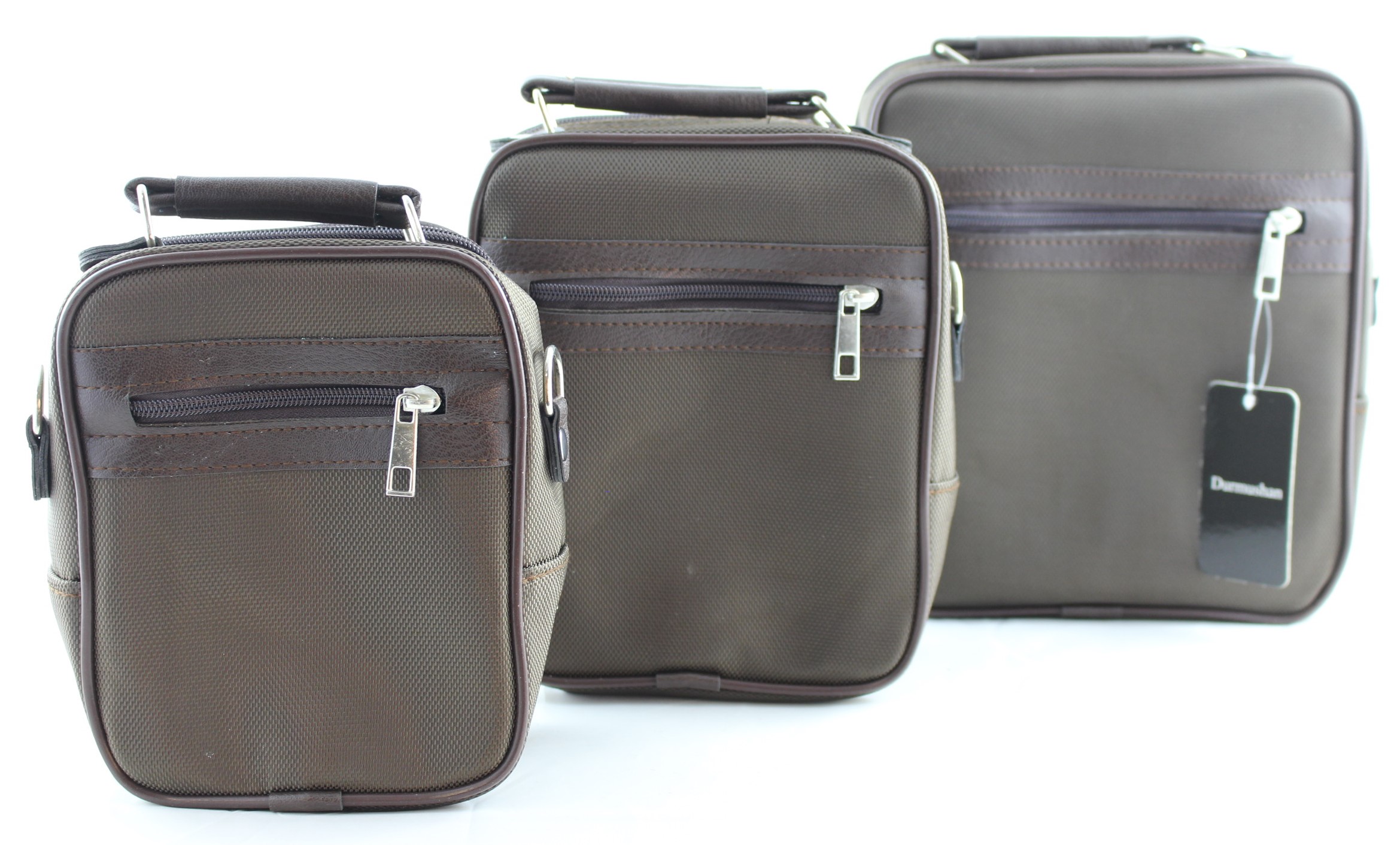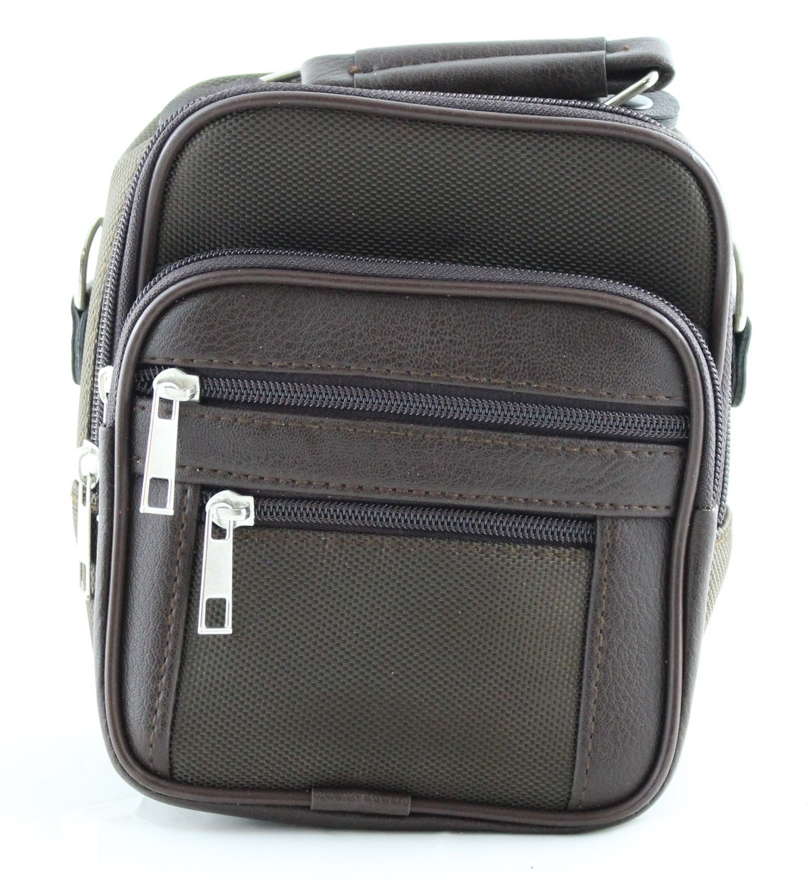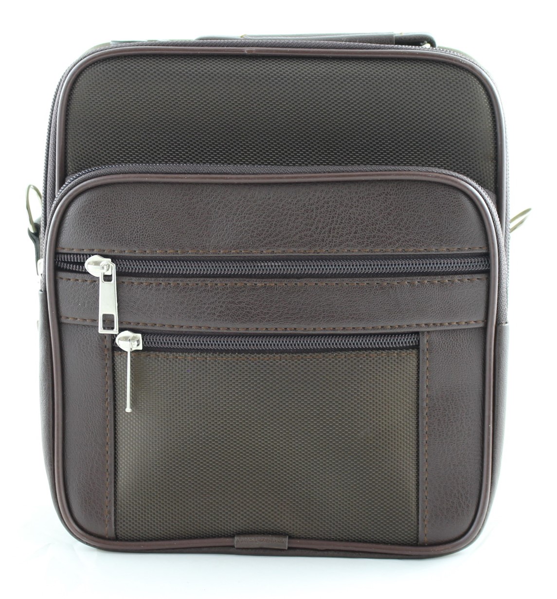 Umhängetasche aus Kunstleder und Stoff dunkel braun 3 tlg.