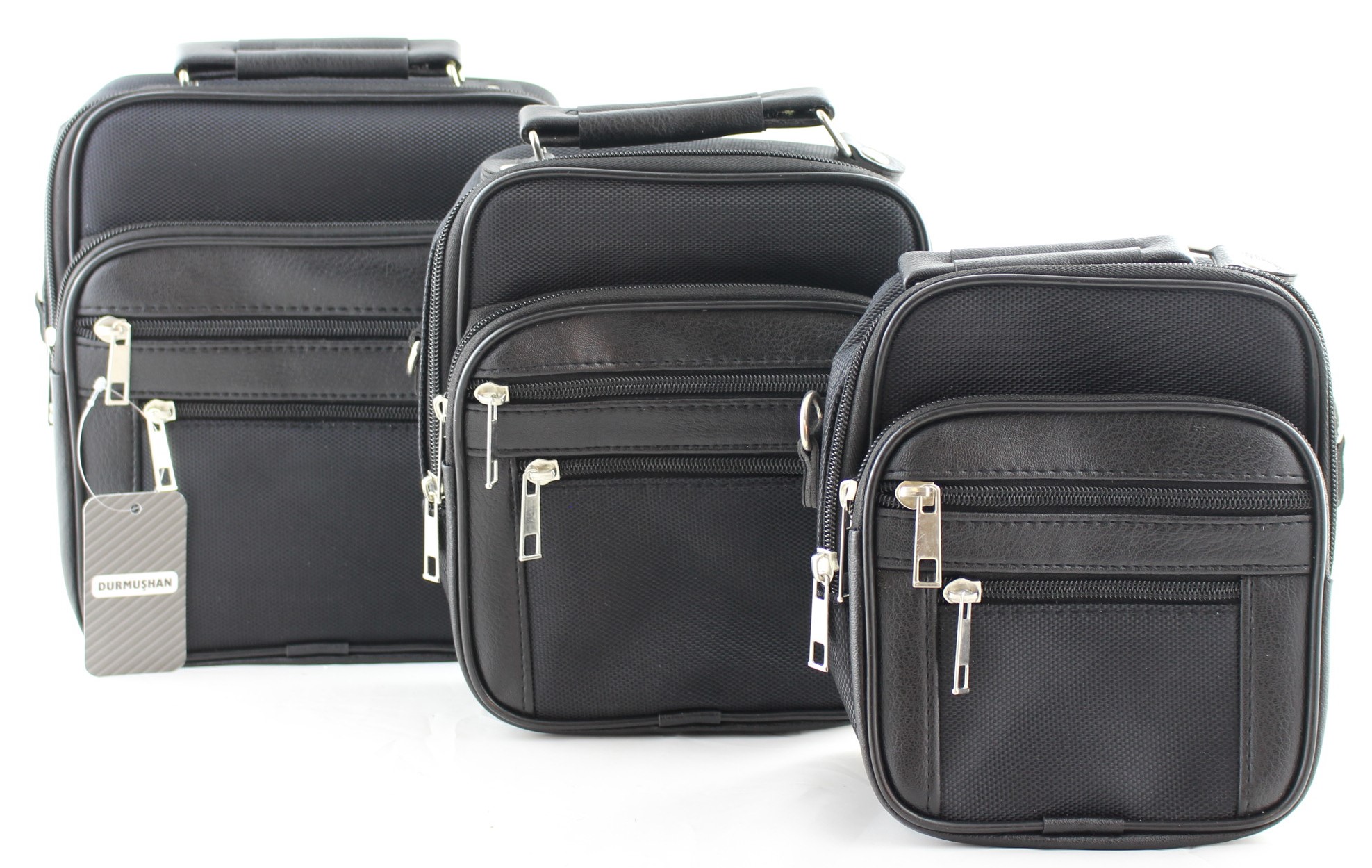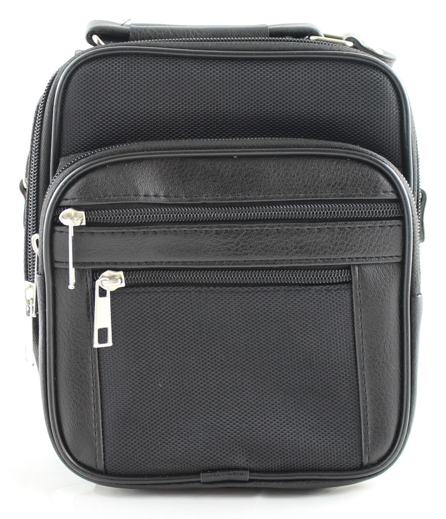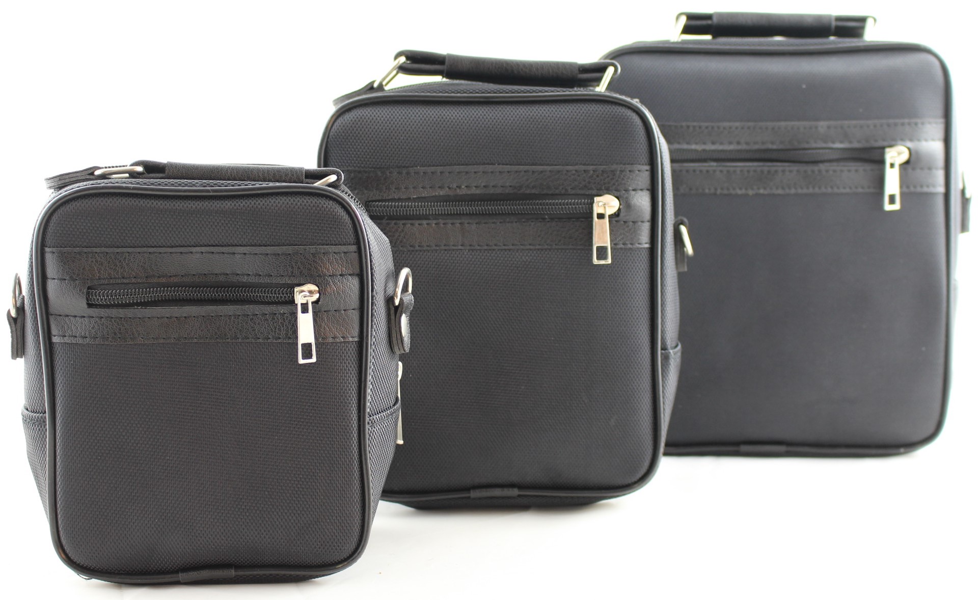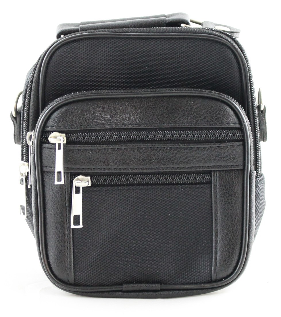Umhängetasche aus Kunstleder und Stoff schwarz 3 tlg.